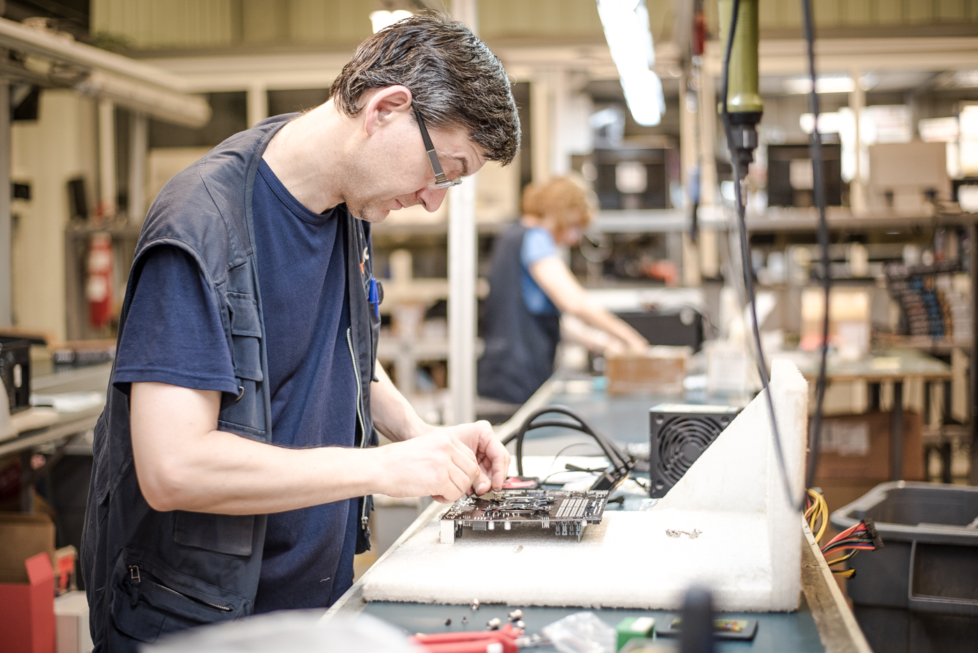 Actualmente, en nuestras instalaciones de más de 1500 metros cuadrados en Reus (Tarragona), contamos con líneas de montaje, ensamblaje y almacenaje para la producción de ordenadores —tanto portátiles como de escritorio— y servidores de alta calidad, listos para su uso tanto en el ámbito particular como en el corporativo o institucional.